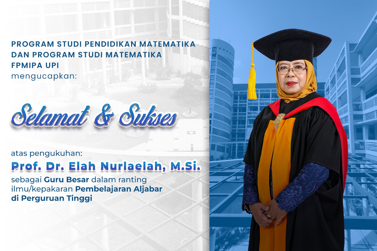 All staff of the Mathematics Education Study Program and the Mathematics Study Program of the Faculty of Mathematics Education and Natural Sciences, Universitas Pendidikan Indonesia congratulate Prof. Dr. Elah Nurlaelah, M.Si. on the achievements of Prof. Dr. Elah Nurlaelah, M.Si.