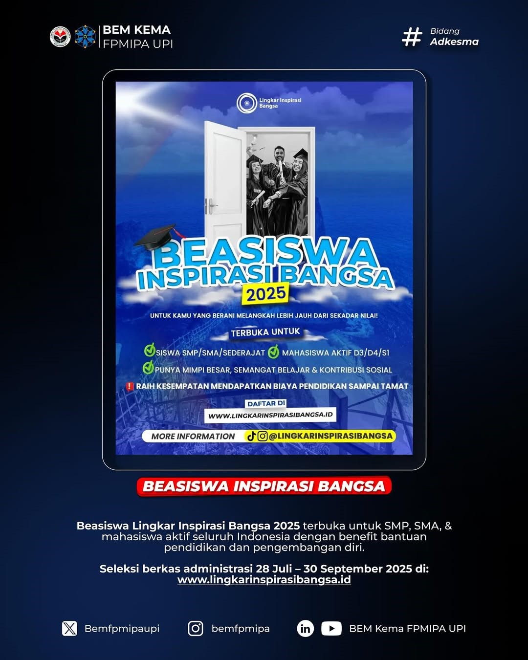 An outstanding opportunity for high-achieving students across Indonesia! The Lingkar Inspirasi Bangsa Scholarship 2025 is now open for junior high, senior high, and active university students (D3/D4/S1) who possess great dreams, strong learning motivation, and a commitment to social contribution.